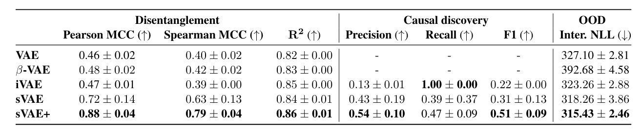and in fact, Locatello (2019) shows ID of disentangled models is impossible for any similar unsupervised model (including \(\beta\)-VAE, TC-VAE, etc.) without inductive bias (or supervision).