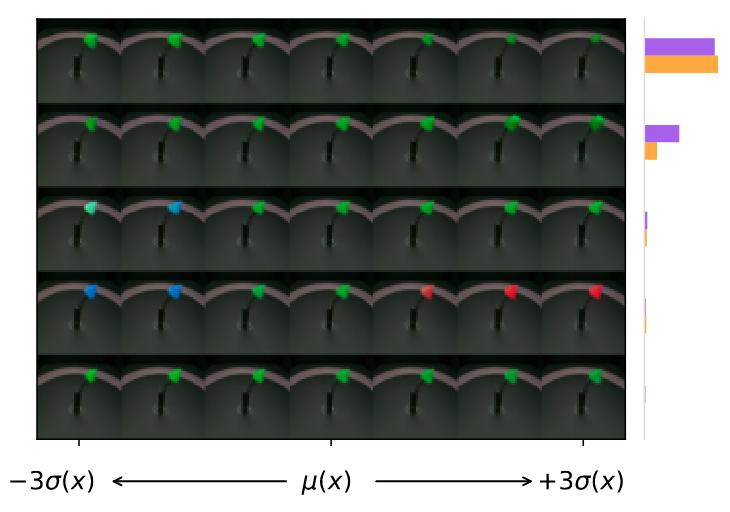 Here we define disentanglement (informally) as separating the distinct factors of variation, or that a change in a single factor \(z_i\) should lead to a single factor of the representation \(r(\mathbf{x})\).